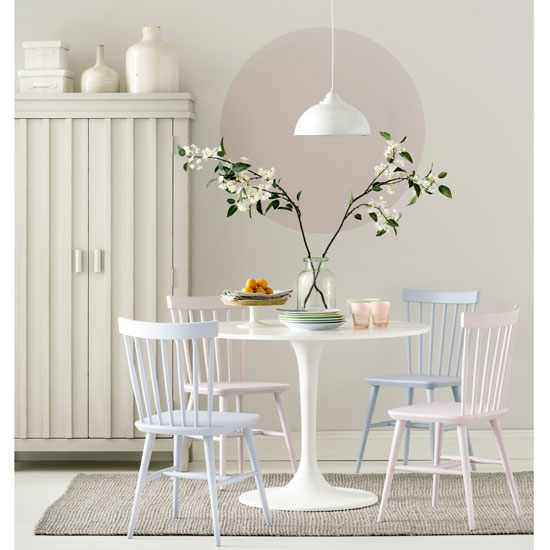 In the striking hallway, textured white details, from petals to wirework to ceramics, look stunning against the beautiful stormy grey walls.